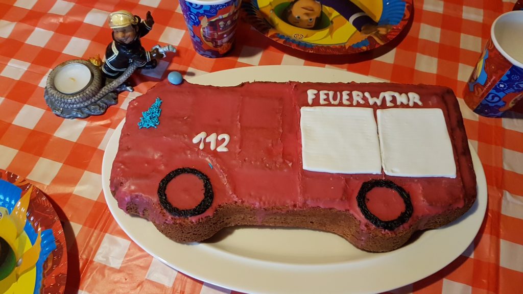 Zu einem Feuerwehr Geburtstag gehört natürlich auch der richtige Kuchen. Hierfür habe ich den Fantakuchen genommen, und den Rest Teig in eine andre Form gegeben. Dafür hatte ich eine extra Backform* bestellt und diese auch schon wieder benutzt zum Geburtstag meines Mannes. Auch bei unserem Feuerwehr Jubiläum im Sommer wird sie wieder zum Einsatz kommen, da hat sich das bestellen echt gelohnt 🙂
