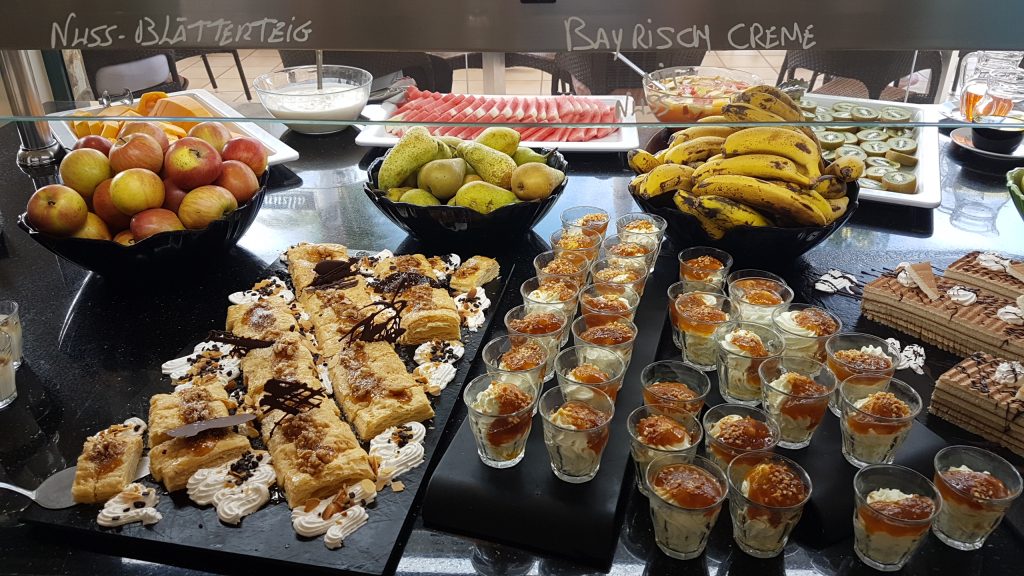 Das Essen hat und in den 10 Tagen auch gut gefallen. Es war für jeden was dabei, abgefangen bei Suppe über diverse Hauptgänge, die zum Teil direkt vor Ort beim Show-Cooking zubereitet wurden. Bis hin zu vielen leckeren Desserts. Es schmeckte uns eigentlich fast alles, was wir so probiert haben und was leer war wurde auch schnell wieder aufgefüllt. Neben den Hauptmahlzeiten im Restaurant gab es an der Bar auch noch Snacks für zwischendurch, wie Hot Dogs, Hamburger und kleine Küchlein. Da war die kleine Maus natürlich immer voll mit dabei, erst im Pool rumtoben, dann ein Hotdog und ab wieder und Wasser. Das Personal, bis auf die Rezeption, war auch immer sehr freundlich und zuvorkommend, so dass wir uns richtig wohl gefühlt haben.