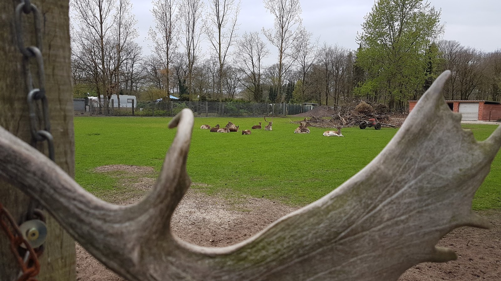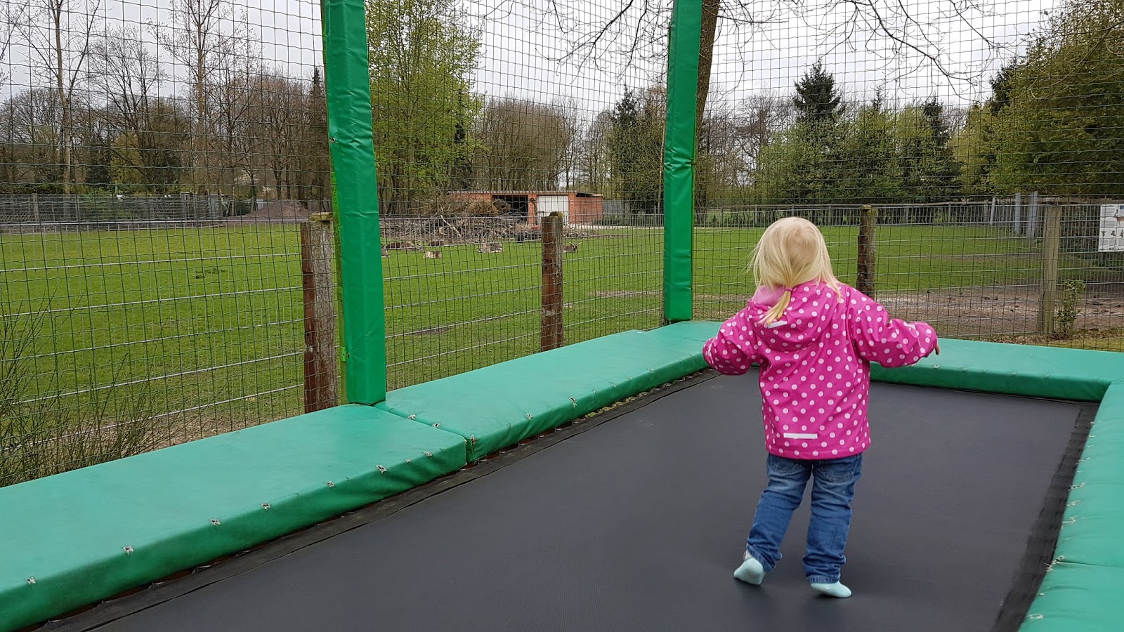 Auch das Damwild kann man vom Spielplatz aus sehen, ein schöner Ausblick während man auf dem Trampolin hüpft 🙂